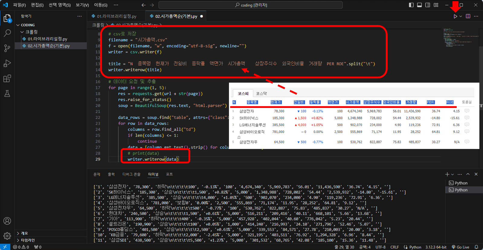 | 웹크롤링_네이버증권 시가총액순 기업정보(심화) (0) | 2024.06.09 |