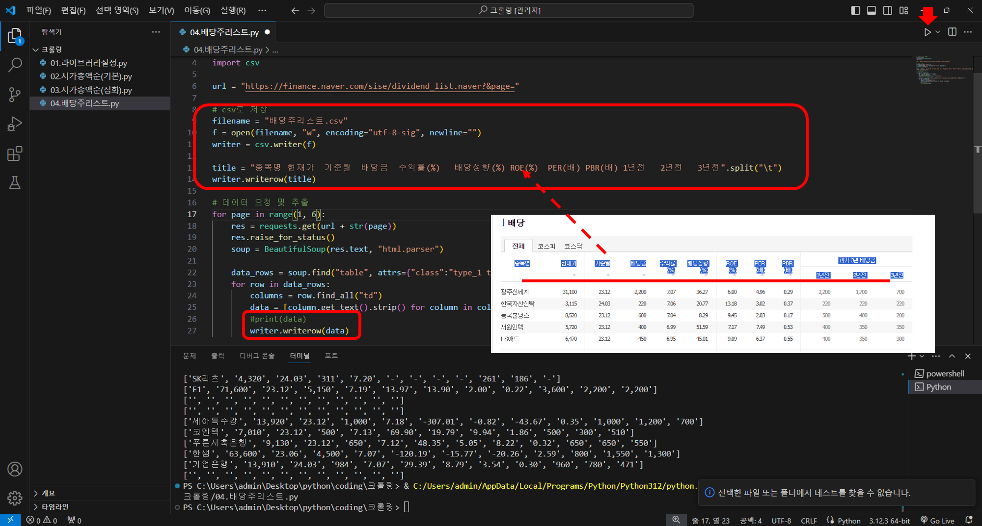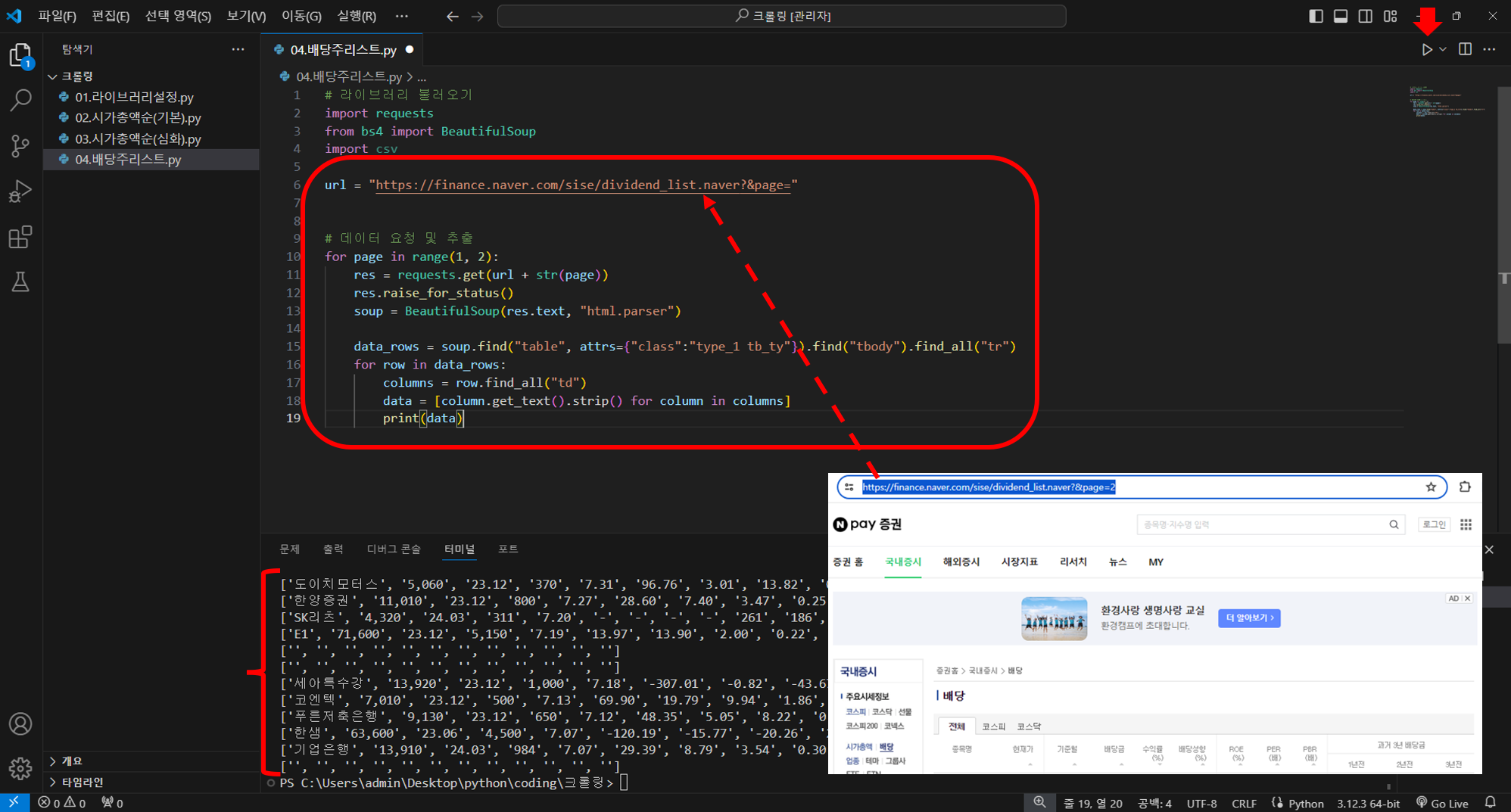 - 배당주에 투자하기 위해 네이버증권에서 직전 3개년 배당금과 최근연도기준 배당수익률 등 기업정보 크롤링하기